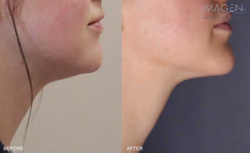 There are other well-known non-surgical neck lift options on the market including injectables like Deoxycholic Acid (Kybella). There are two primary reasons Imagen does not offer Kybella: results and potential side-effects. Whether it’s injectables for cellulite or chin fat, these treatments often require several sessions to achieve minimal results. It’s important that you feel comfortable with both your plastic surgeon or cosmetic surgeon, regardless of the treatment you choose. Your doctor should go over your expectations as well as all of the potential side-effects of your non-surgical neck lift treatment. Some of the potential side-effects of Kybella include nerve injury in the jaw and necrosis (tissue cell-death) around the injection site.